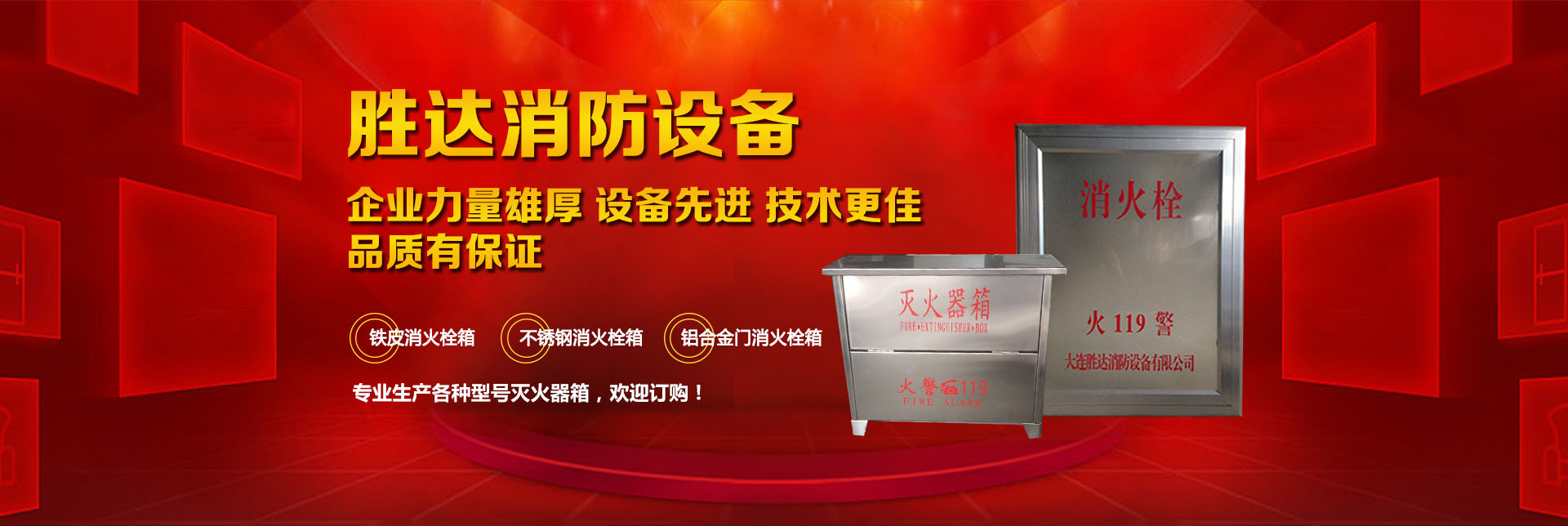 大連勝達消防設備有限公司本公司企業(yè)力量雄厚、設備先進,生產的所有消防產品均符合國家GB14561—J標準,品質有保證。我公司地理位置優(yōu)越,位于大連市甘井子區(qū)西北路847號交通便捷,公司專業(yè)生產各種型號滅火器箱、消火栓箱、鐵皮消火栓箱、不銹鋼消火栓箱、鋁合金門消火栓箱。消火栓箱系列產品,全部按照國家標準和行業(yè)標準進行生產,并通過國家合格鑒定,得到了國家固定滅火系統(tǒng)和耐火構件質量監(jiān)督檢驗中心的產品認證和產品形式報告書。我們的消火栓箱系列產品具有外形美觀、結構先進、開啟靈活、使用可靠、消火應急燈具標志清晰、光色好、功耗低、使用壽命長、安裝使用簡便,可廣泛應用于高層建筑和工業(yè)等一些公關場所使用。